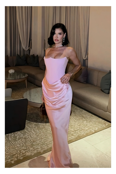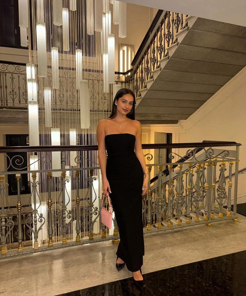 Model is 5’10 wearing size S. Total length of dress is 82cm.